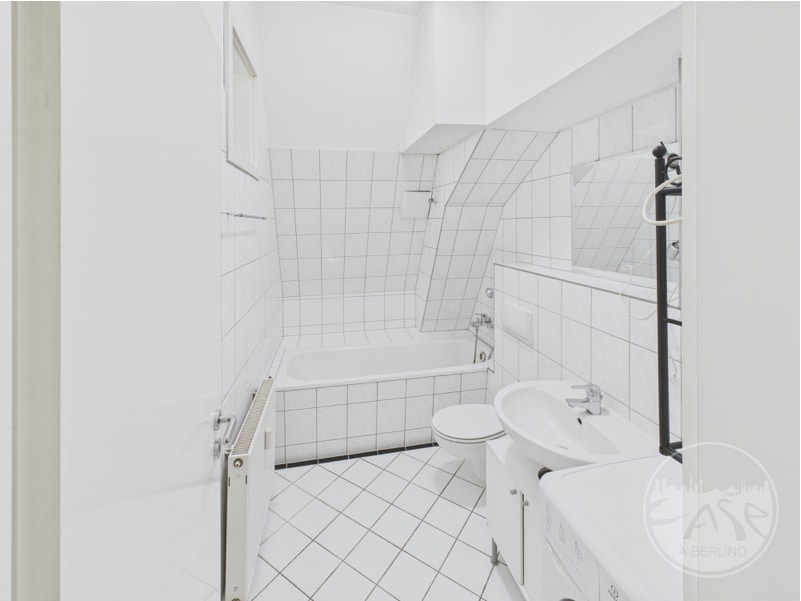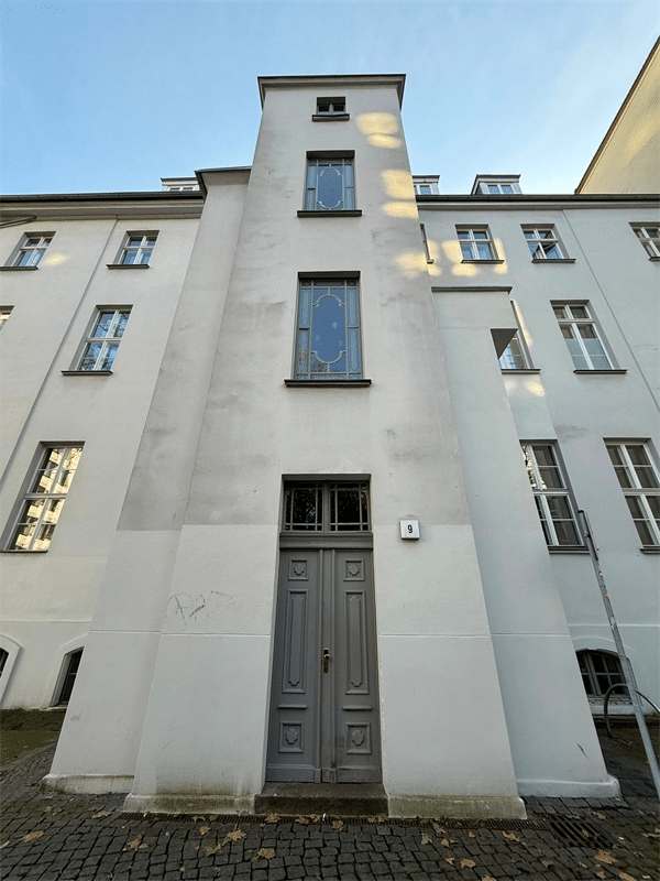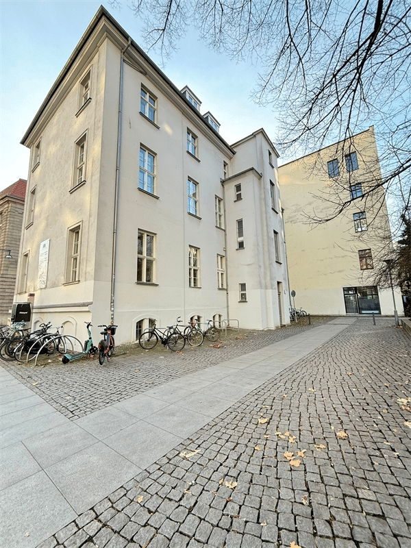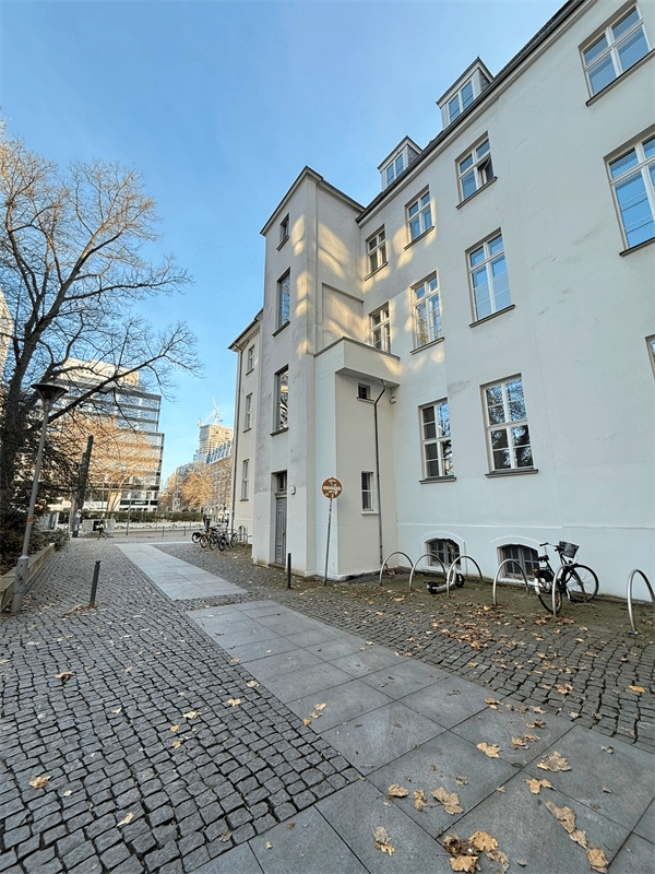 The building itself is an important historical monument of Berlin, well maintained and distinguished by its period staircase with elegant wooden details and a carefully preserved entrance. Behind the house, a small tree-lined park offers a peaceful corner of greenery, despite the extremely central location.
