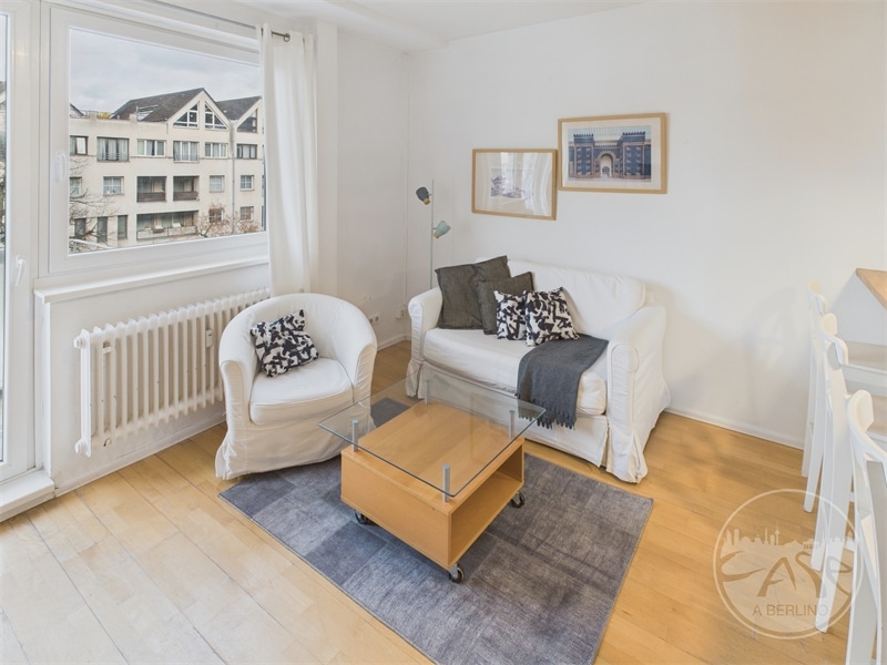 Situated on a quiet residential street in Wilmersdorf, on the fourth floor of a 1950s building with an elevator, this one-bedroom apartment stands out for its brightness and well-planned layout.