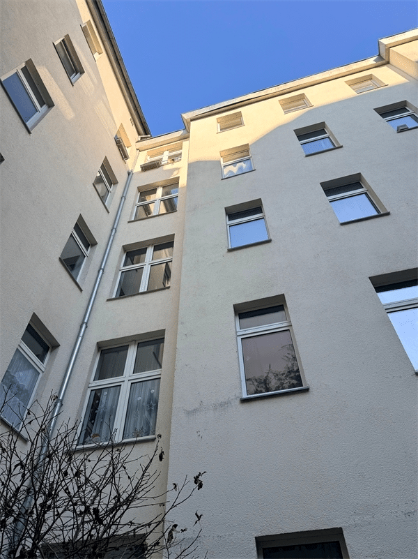 The apartment is located on the fourth floor of a well-maintained Berlin period building dating back to 1890 and features the typical charm of a classic Altbau. Situated in the quiet inner section of the complex, it faces the inner courtyard, offering a particularly peaceful and private atmosphere along with good natural light.