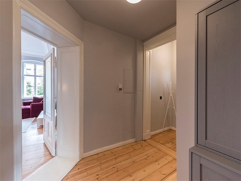 Querelle de Brest (ca. 80 sqm) is located on the first floor of a historic building. It is diveded into a large living area – facing the famous bergmannstraße – with lounge area and a beautiful dining table. The bedroom and the study both face the quiet inner courtyard. The master bathroom (with bidet!) features high-quality materials. In the hallway there is also a small guest toilet and built-in closet with space for the washing machine.