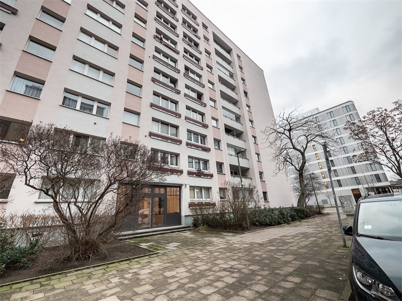 The attractive, bright 54 m² apartment is located on the 8.th floor in a modernized and originally typical GDR prefabricated building (with elevator). The spacious living room has a comfortable sofabed. Along the large window front that runs through the entire living/dining area you´ll find a nice little dinnertable. The kitchen is fully equipped and open plan. The larger bedroom offers a comfortable double bed and a high wardrobe with plenty of storage space, the second one has a sofabed and also a wardrobe. The modern bathroom has white tiles and a bathtub.