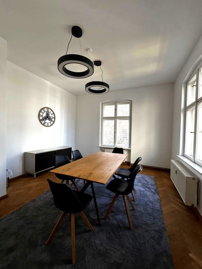 To the right of the entrance you will find the first two large rooms, which are also connected to each other by a double door. At the end of the hallway you´ll find the third room, whose windows face north and east.