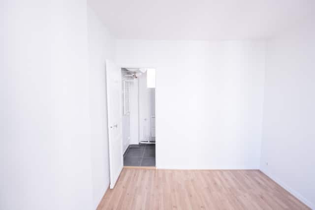 The flat overlooks a pretty courtyard with trees, the two main rooms are west facing.