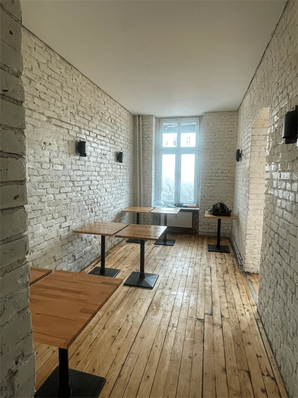 Die Fläche von ca. 56 m² umfasst einen Gastraum mit Bartresen, einen zweiten Gästeraum, eine Küche mit Fenster sowie ein Gäste-WC. Zusätzlich steht ein Kellerraum von ca. 29 m² zur Verfügung (dieser Anteilig im Kaufpreis mit 8 m² angerechnet wurde), der sich ideal als Lagerfläche eignet und direkt über den Innenhof des Gebäudes zugänglich ist. Vor dem Lokal besteht außerdem die Möglichkeit, Außenflächen für Tische und Sitzplätze zu nutzen.