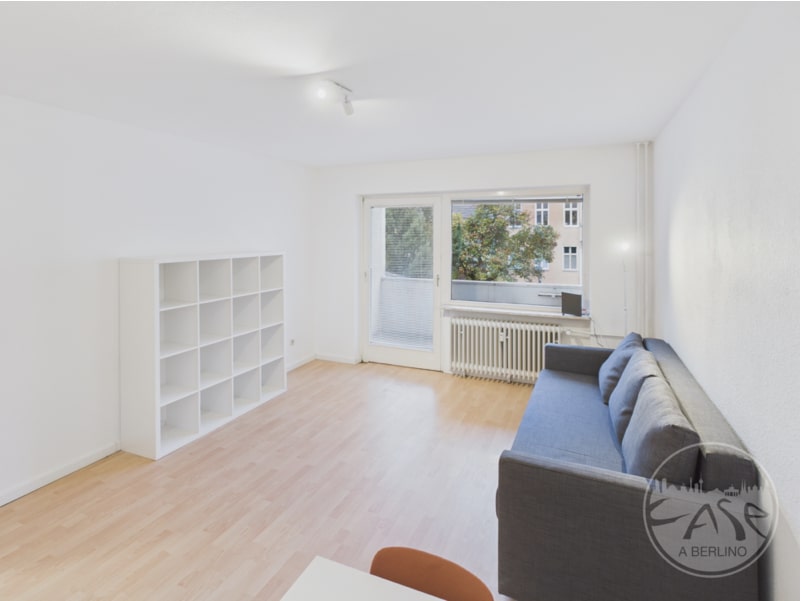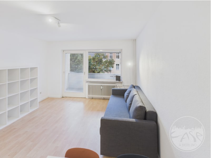 Diese helle und komplett möblierte 1-Zimmer-Wohnung mit einer Wohnfläche von etwa 53 m² befindet sich in einem gepflegten Mehrfamilienhaus in ruhiger, zugleich hervorragend angebundener Lage im Berliner Stadtteil Steglitz Der Grundriss ist effizient gestaltet und bietet ein großzügiges Wohnzimmer mit Zugang zum Balkon, ein ruhig gelegenes Schlafzimmer mit Doppelbett und großem Kleiderschrank sowie eine moderne, voll ausgestattete Einbauküche. Das Tageslichtbad ist freundlich gestaltet, gepflegt und verfügt über Dusche, Waschbecken, WC und Waschmaschine.