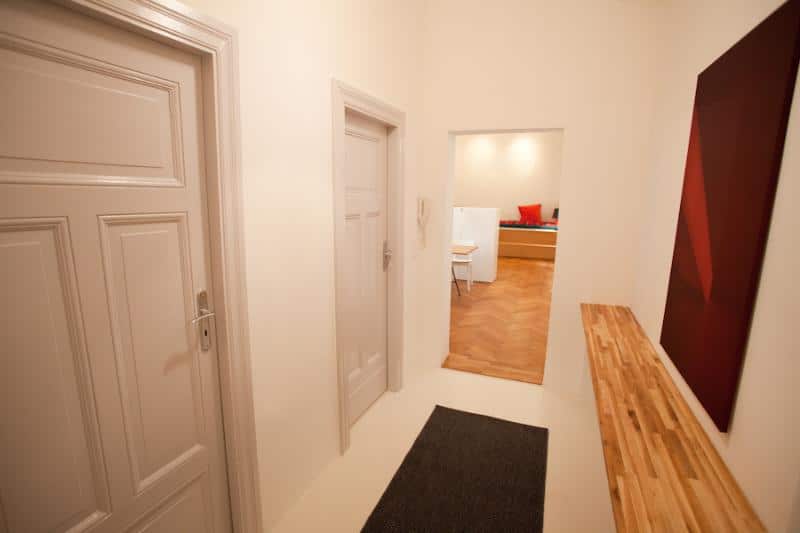 Rapunzel (ca. 60 m²) liegt im 1. Stock (ohne Fahrstuhl) eines schönen Altbaus im ruhigen Seitenflügel. Das geräumige Wohnzimmer ist mit Hilfe eines geschmackvollen Raumteilers geschickt in zwei Teile eingeteilt. Der Essbereich ist direkt am großen Fenster positioniert und bietet einen großen Esstisch sowie eine moderne offene, komplett ausgestattete Küchenzeile. Der Wohnbereich verfügt über eine großzügig geschnittene Sitzecke mit Sofa. Das separate Schlafzimmer hat ein Doppelbett und einen Kleiderschrank. Das moderne Badezimmer bietet eine Dusche.