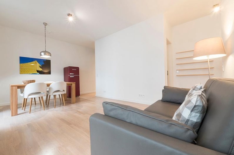 L’appartamento è composto da un´ ampia zona giorno con cucina completamente arredata, un tavolo da pranzo e una zona relax con TV e comodo divano-letto.