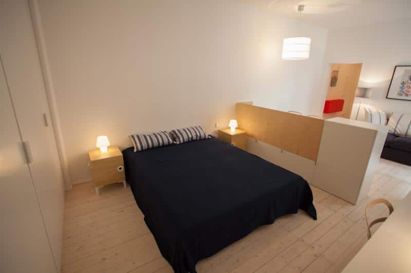 Stand by me è un accogliente appartamento di circa 33 mq situato al secondo piano senza ascensore di un palazzo storico. È costituito da un’ampia stanza centrale divisa tra zona notte e piccolo soggiorno. Il letto matrimoniale è separato dalla zona giorno con una panca. La cucina è piccola ma completamente attrezzata. Il bagno è dotato di una pratica doccia.