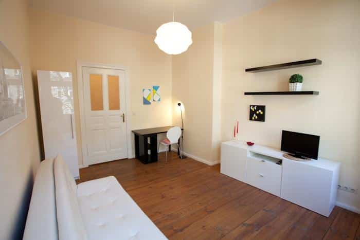 L’appartamento (ca. 55 mq), sito all’interno di un tipico ed elegante palazzo antico dispone di una camera da letto e un soggiorno con divano letto per gli ospiti, inoltre di una cucina completamente arredata e un bagno relativamente spazioso con una vasca.