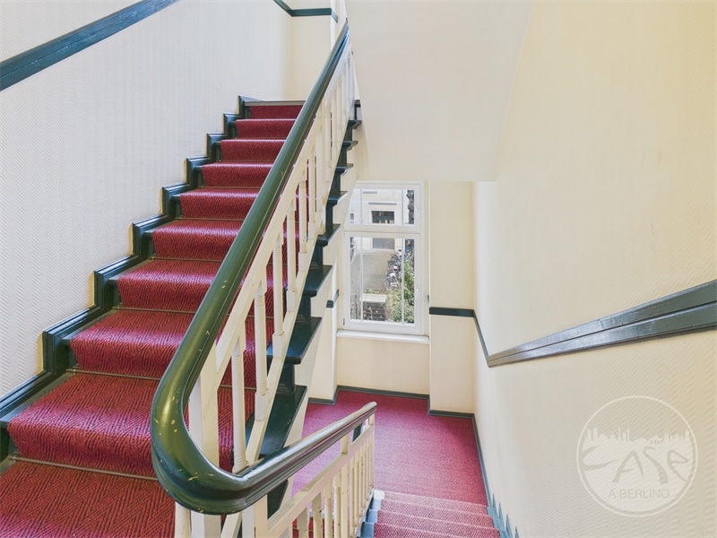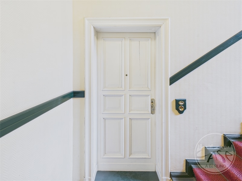 L’appartamento è libero e si trova al secondo piano di un tipico palazzo d’epoca, caratterizzato dal fascino dell’architettura berlinese.