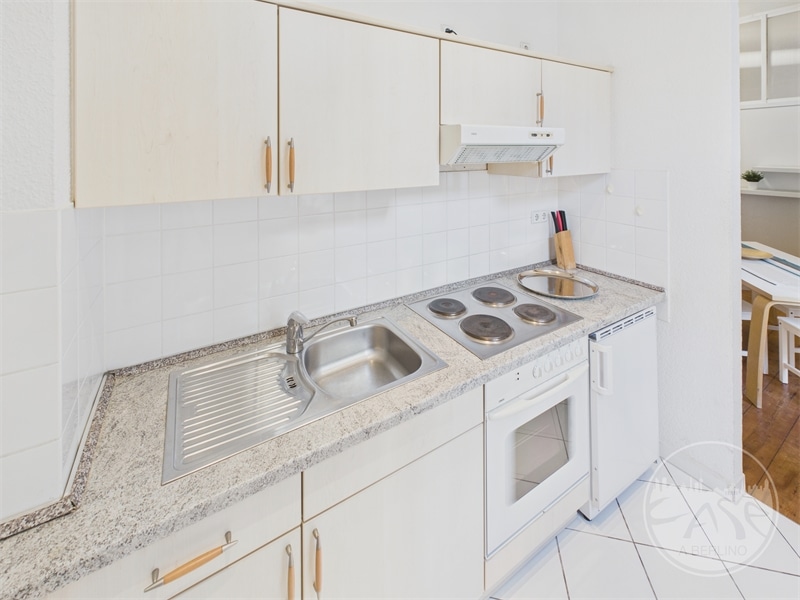 L’unità è composta da una camera principale con ampia porta-finestra dotata di balcone alla francese, pavimenti in legno originali e soffitti alti, elementi che conferiscono all’ambiente un’atmosfera ariosa e accogliente. La cucina, separata e completamente attrezzata, offre uno spazio funzionale e ben organizzato per l’uso quotidiano, mentre il bagno dispone di doccia e attacco per la lavatrice.