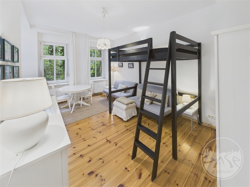 Un accogliente appartamento di circa 34 mq, situato al piano terra con affaccio interno di un tipico Altbau berlinese, ideale come investimento o come pratica soluzione abitativa in città.